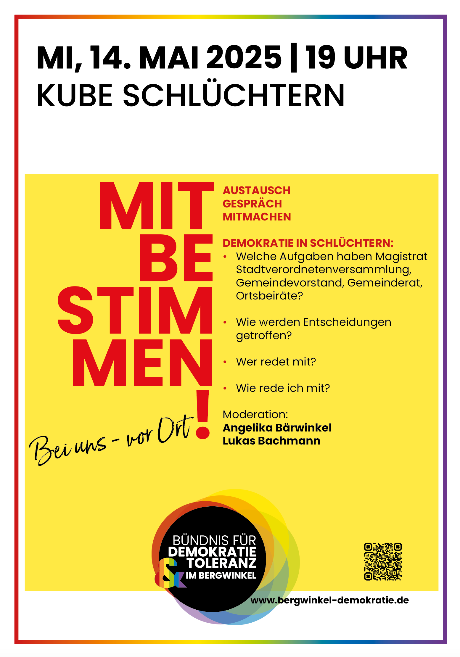 Das Bündnis für Demokratie und Toleranz lud zum zweiten SingAlong auf den Stadtplatz in Schlüchtern ein (das erste fand am 1.9.2024 statt). Unter dem Motto "Stimme gegen Hass und Hetze" wurden 15 verschiedensprachige Lieder gemeinsam gesungen. Inspiriert wurde das Event durch die Sing-Aktion "Magdeburg für eine weltoffene Stadt". Initiator neben dem Bündnis waren Heidrun Göttsche und Angela Labella vom Sterbfritzer Kirchechor Con Dio.