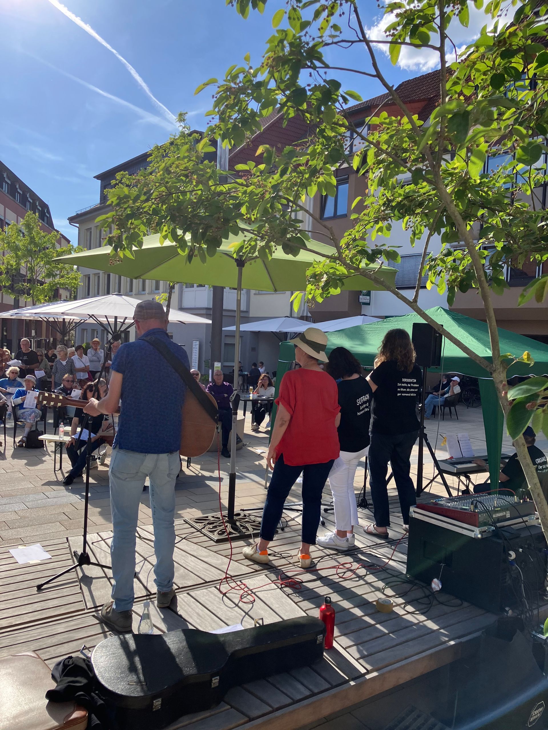 Öffentliches Singalong auf dem Stadtplatz (ca. 250 Teilnehmer)